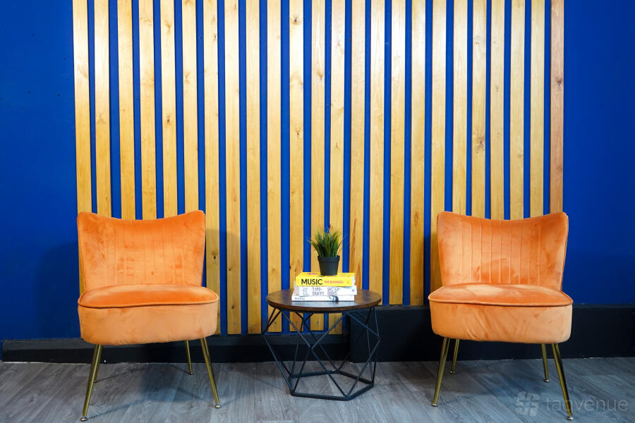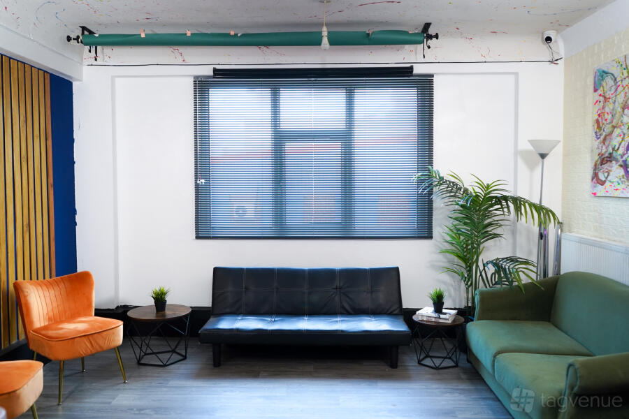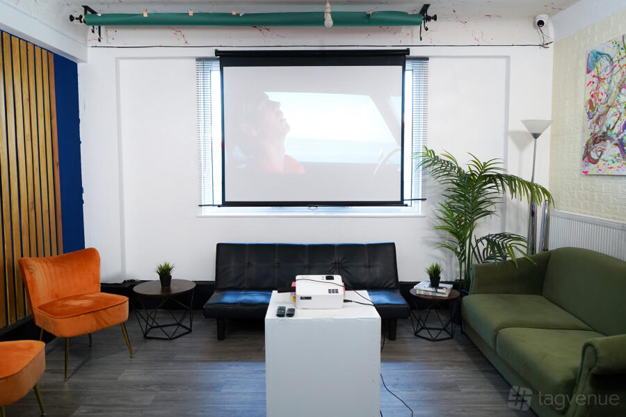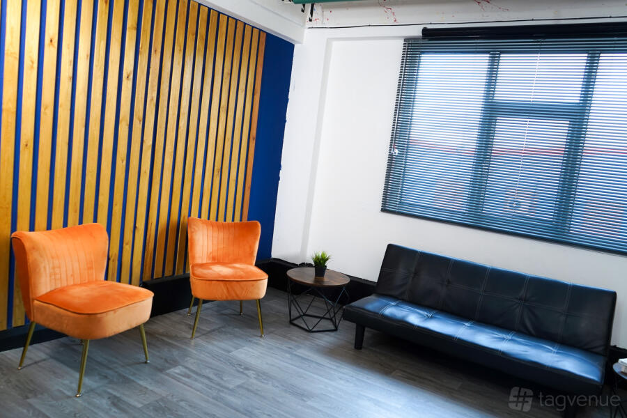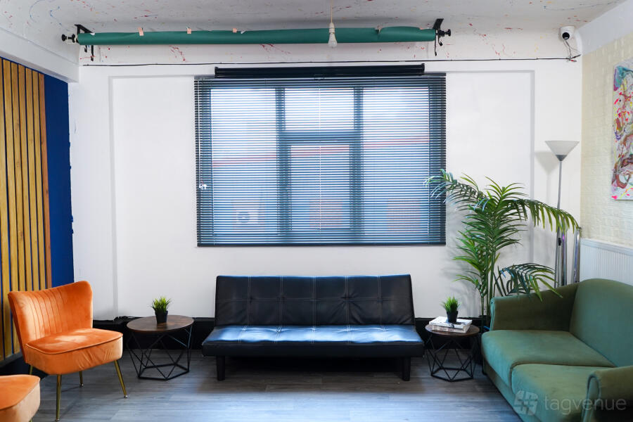 The main studio space is perfect for photography and videography shoots, although its versatility knows no bounds. The smaller section of the separated room multitasks as a studio for audio recording, yet it also transforms into a comfortable office environment, complete with essential amenities such as Apple Mac computers, and Printers.