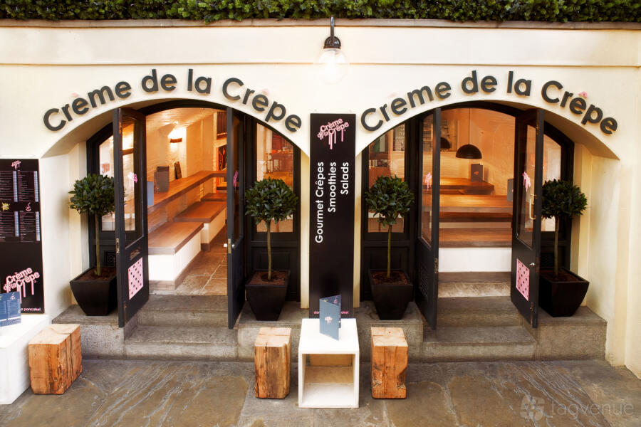 Creme de la Crepe is located at 29 The Market, in the Covent Garden, London district of London. The nearest metro station is Covent Garden Station.