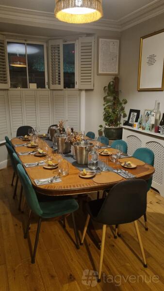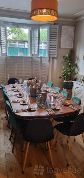 This quirky and artfully decorated, plant-adorned space magically transforms into a private dining room for you and your guests, with a large communal dining table that seats up to 12