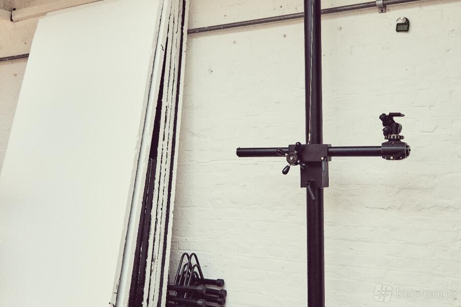 The electricity supply is at 240 Volts for your convenience. If needed, Coloramas are available for purchase by the meter or roll. With your rental, you'll also have access to essential equipment like Polly boards, sandbags, and background stands.