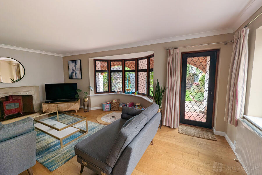 The south-facing garden offers an inviting outdoor setting, accentuated by an attractive loggia that can be utilised for various outdoor scenes. The presence of a detached garage on the side further enhances the location’s appeal and utility for a range of production requirements.