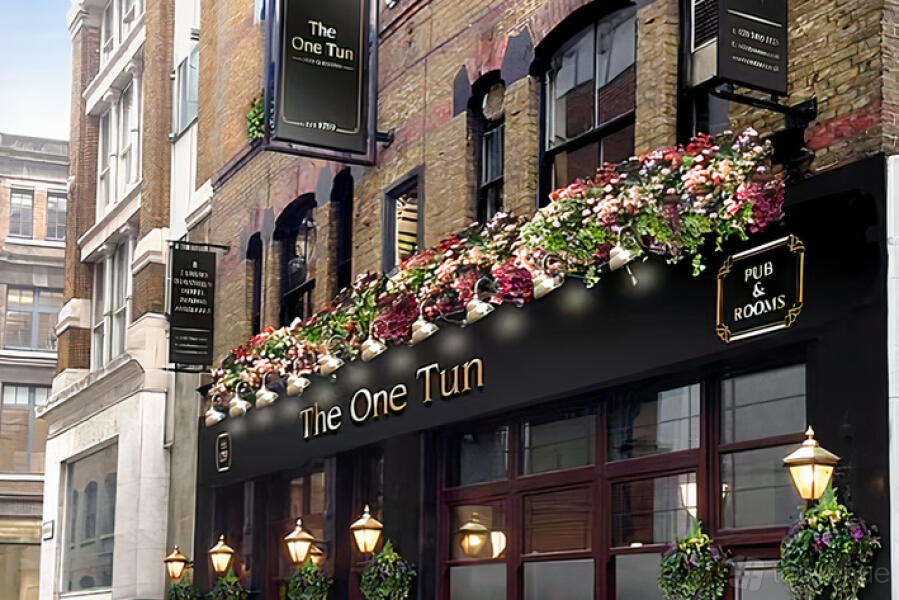 The One Tun Pub & Rooms is located at 125 Saffron Hill, in the Farringdon, London district of London. The nearest metro station is Farringdon Station.