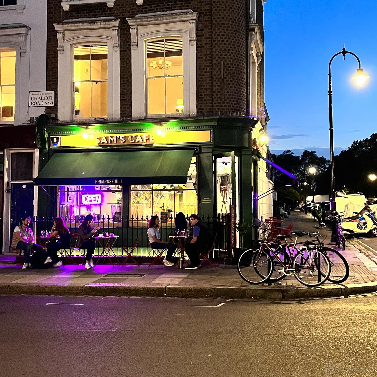Sams Cafe Primrosehill is located at 40 Chalcot Road, in the Primrose Hill, London district of London. The nearest metro station is Chalk Farm Station.