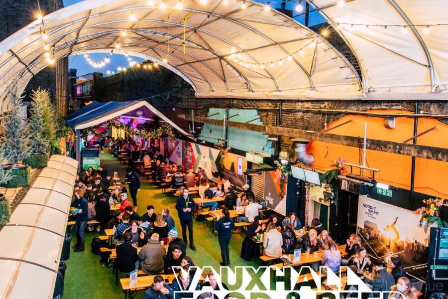 Vauxhall Food and Beer Garden is located at South Lambeth Place, in the Vauxhall, London district of London. The nearest metro station is Vauxhall Station.