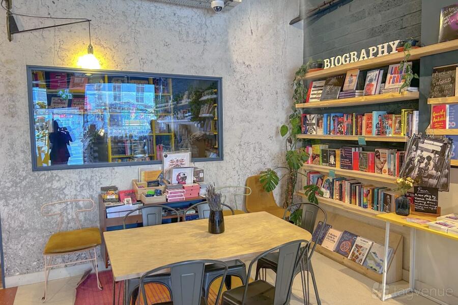 The bookshop is ideal for talks and social gatherings for up to 50 people; the spaces can be hired together or separately.