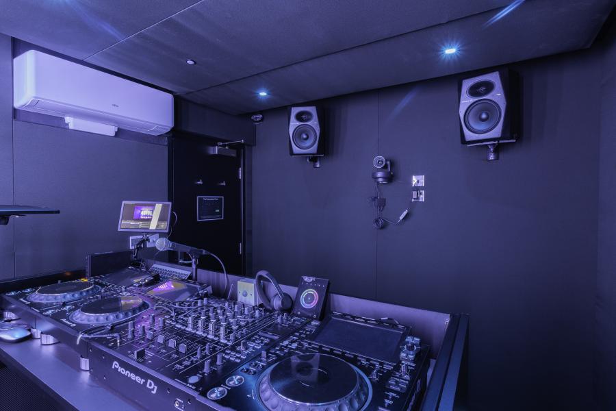 A stylishly designed vinyl-listening lounge connects to 2 production studios and 2 DJ rooms which collectively provide a unique location for casual listening sessions, intimate gatherings and branded pop-up events. A stylishly designed vinyl-listening lounge connects to 2 production studios and 2 DJ rooms which collectively provide a unique location for casual listening sessions, intimate gatherings and branded pop-up events.