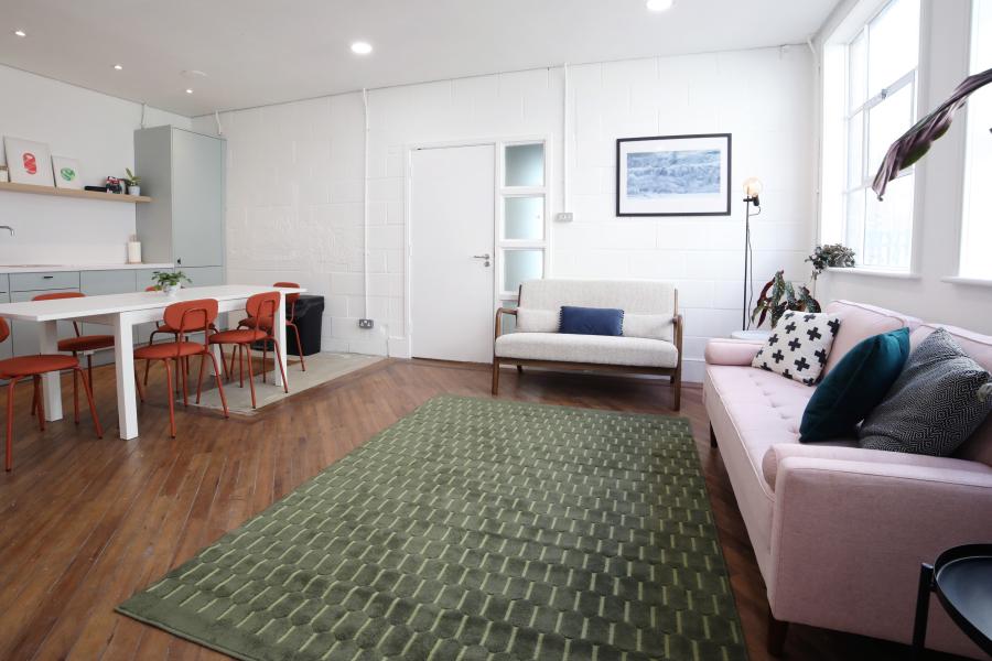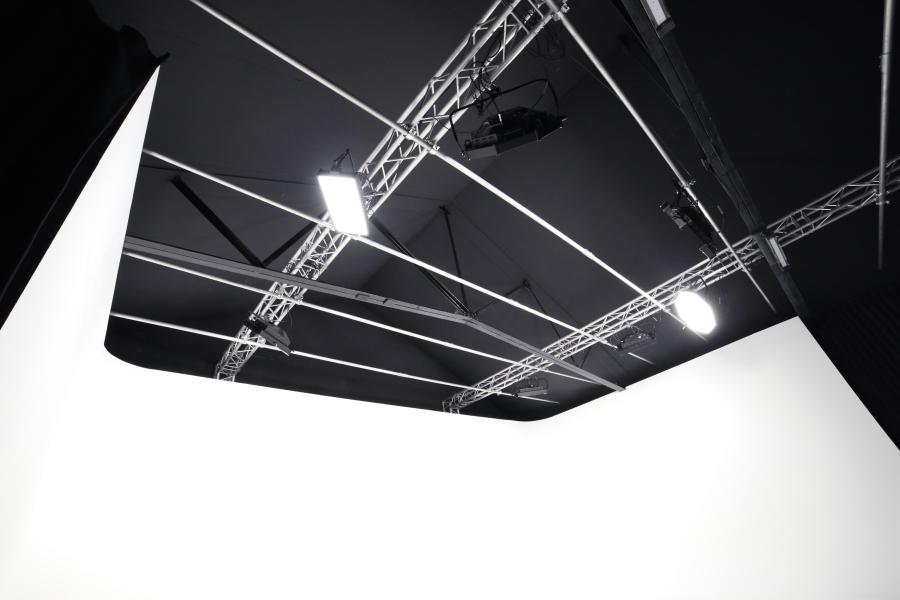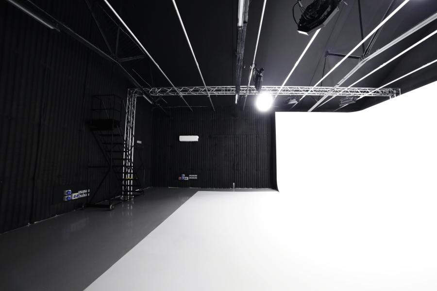 The studio has a large open plan area for shooting, and a wide shutter door for load-in access making it suitable for all kinds of shoots including set builds. The cove comes pre-lit with Chroma-Q Space Force LED lights mounted onto the overhead lighting rig. There is 3 phase 32 amp power as well as single phase 32, 16 and 13 amp.