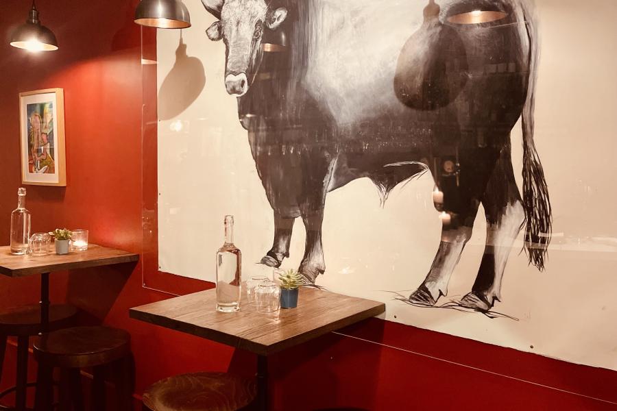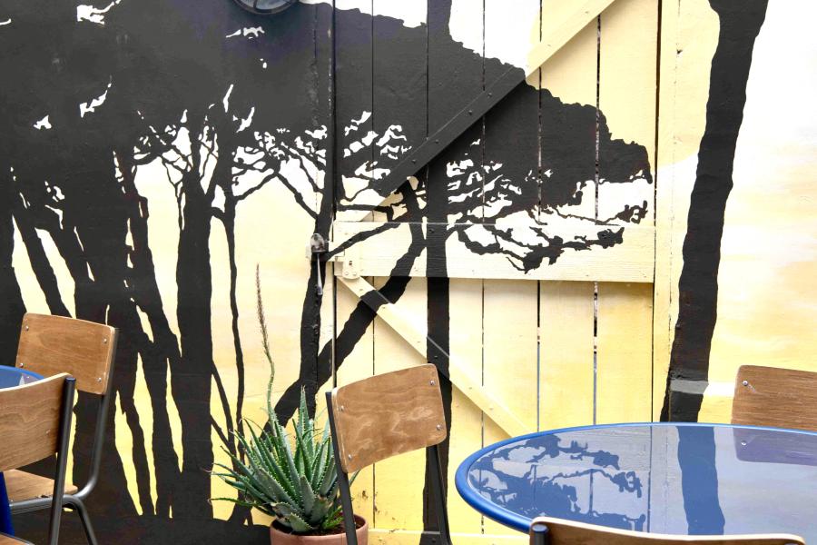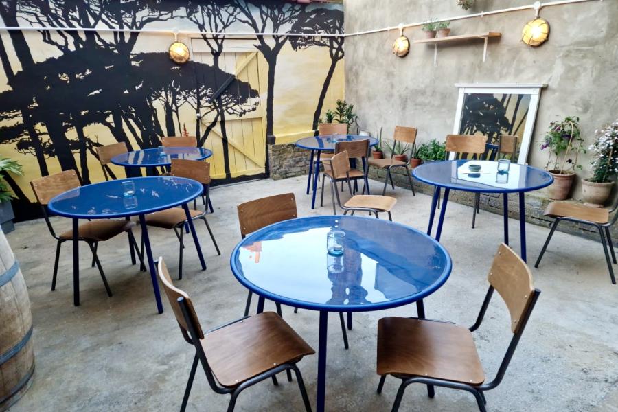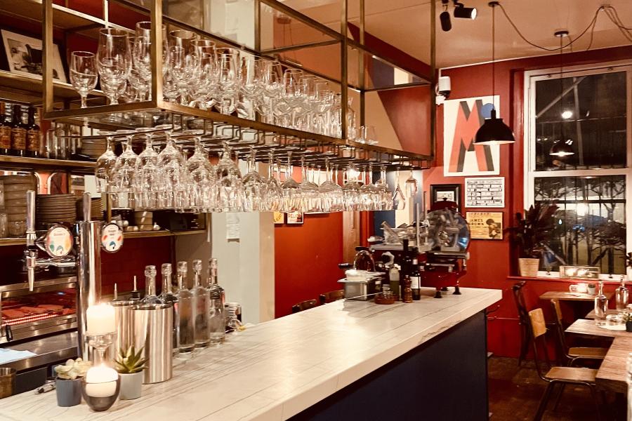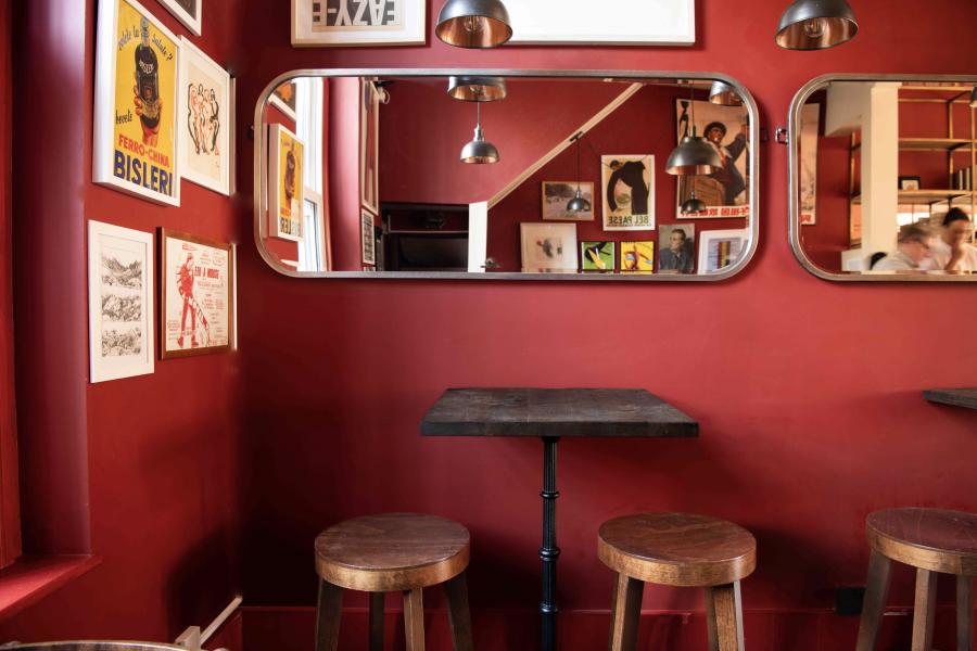 Housed in a former café on Tulse Hill, the bar draws on the wild Maremman landscape, iron rich clay and fertile volcanic soil central to viniculture and winemaking since the Etruscans. The soil, the forests, hills, olive groves and Tyrrhenian sea have inspired the colour scheme of terracotta red with notes of deep blue and sage green. Dickie, a Brixton resident for almost 50 years, has also included his personal collection of local gig posters of as part of the décor.