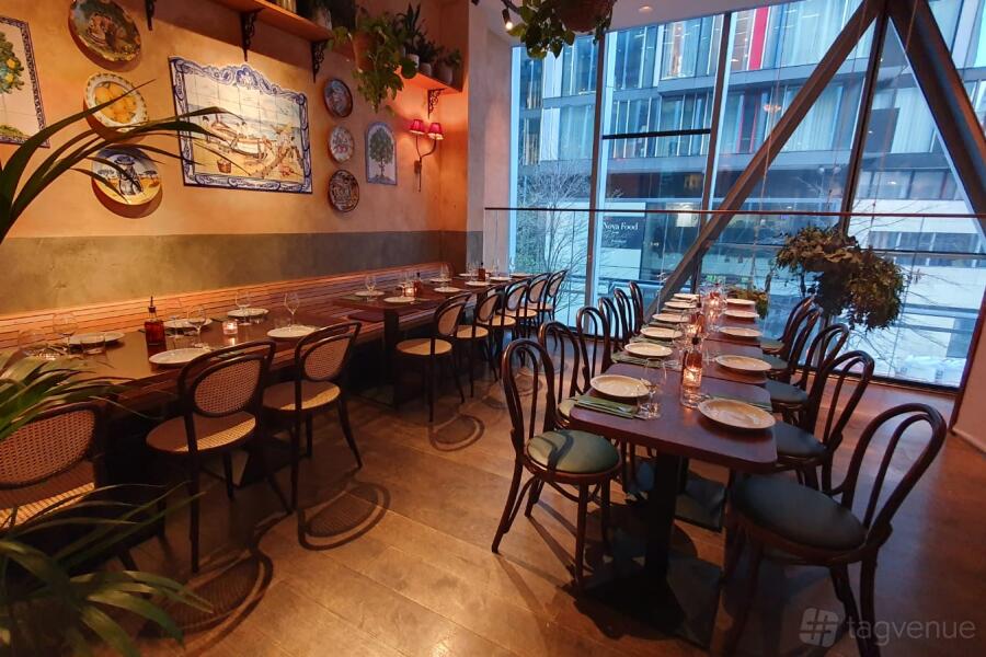 Casa is set over two sun-soaked floors, with expansive windows and our signature hanging greenery. A collection of uniquely Portuguese azulejos – decorative tilework – algin the walls, a traditional art crafted to welcome guests. The restaurant is in view of our open charcoal grill and leads upstairs to our large Mezzanine with its own bar, the perfect setting to sip a Piri-Piri Margarita, overlooking the restaurant below.