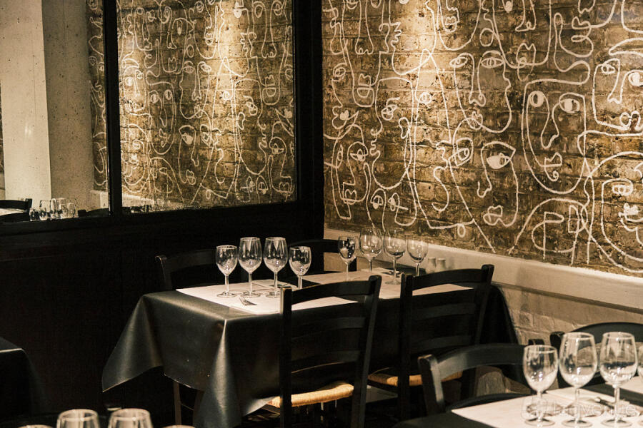 Downstairs you'll find our beautifully refurbished cellar space; Picasso-style murals adorn the exposed brickwork, a tarnished mirror takes up another wall and the lighting is soft and elegant; overall the effect is sophisticated yet relaxing. The space offers seating for larger tables and there's also two cosy alcoves for a more intimate dining experience.