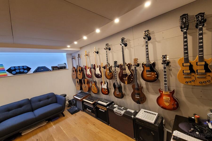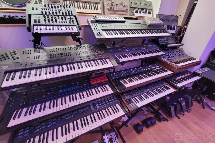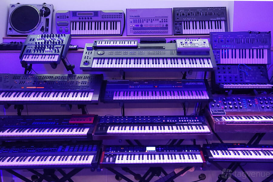 You will also find walls of electric and acoustic guitars, exotic and rare stringed instruments; and plenty of percussion instruments to play with.