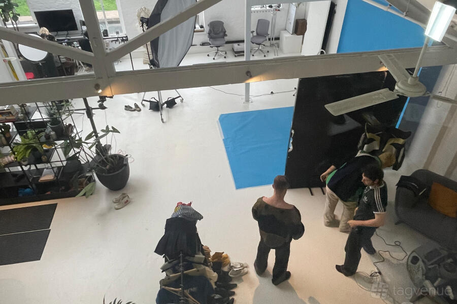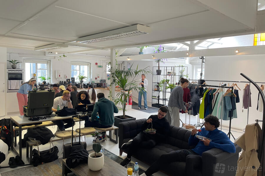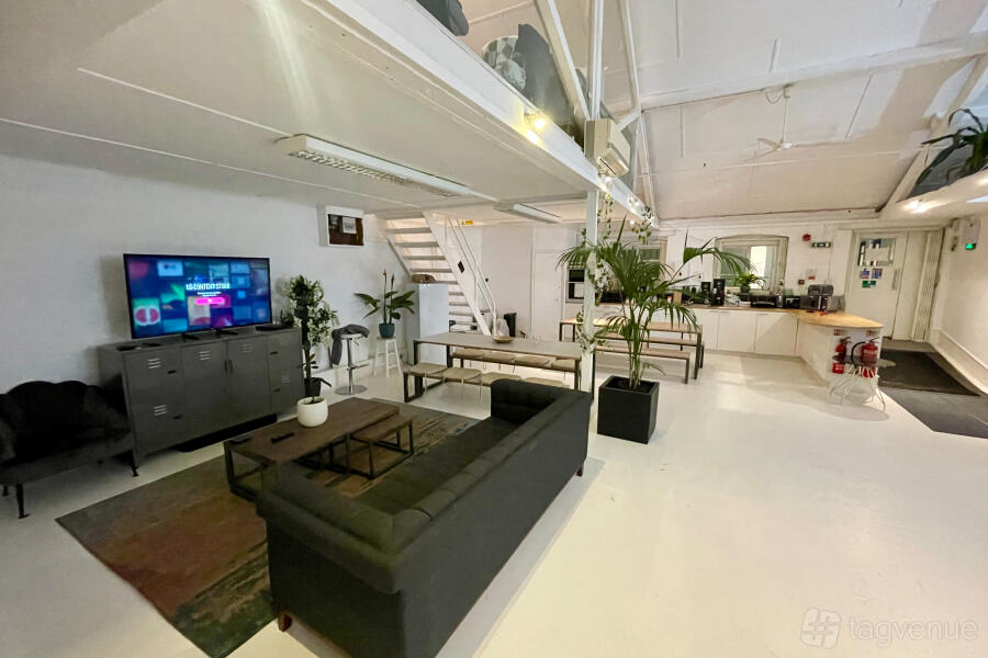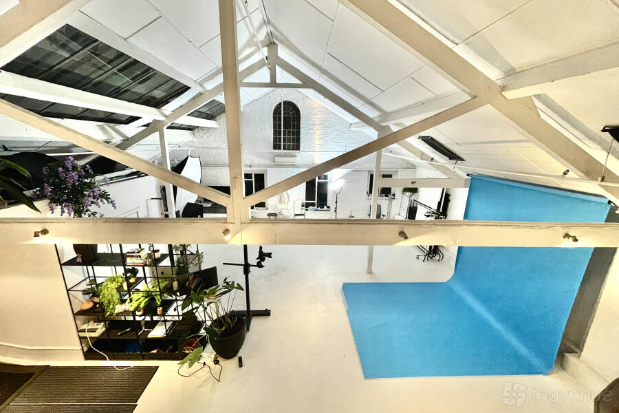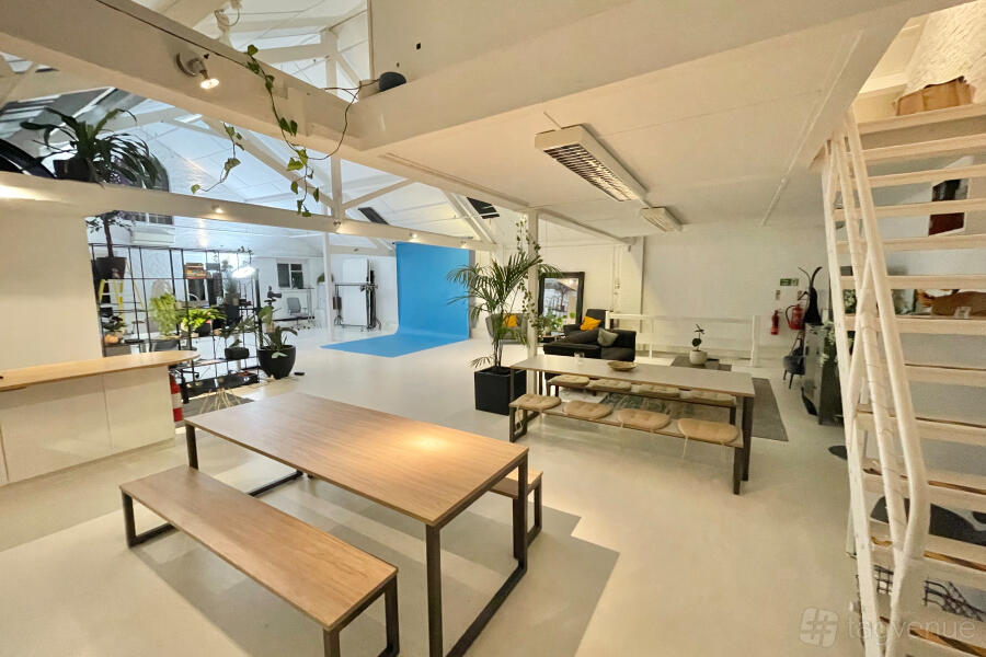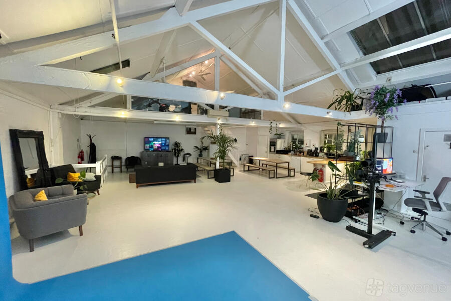 The studio benefits from a kitchen, lighting equipment, colorama backdrops and private bathrooms and seating areas.