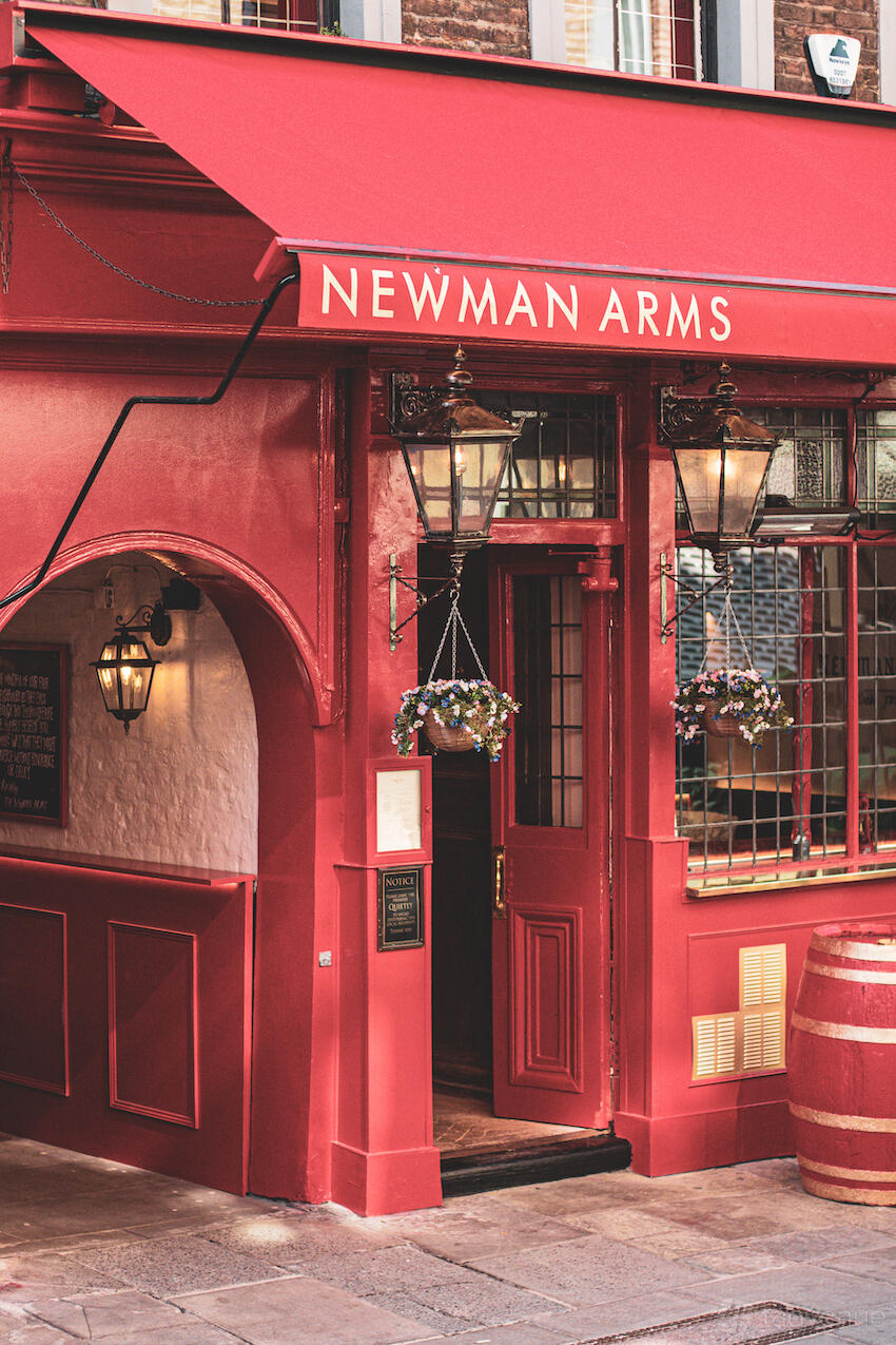 The Newman Arms is located at 23 Rathbone Place, in the Fitzrovia, London district of London. The nearest metro station is Goodge Street Station.