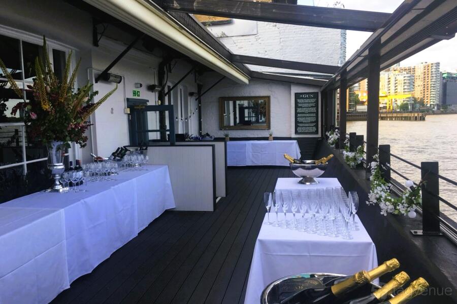 The Gun is located at 27 Coldharbour, in the Docklands, London district of London. The nearest metro station is Blackwall Station.