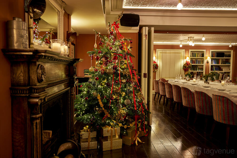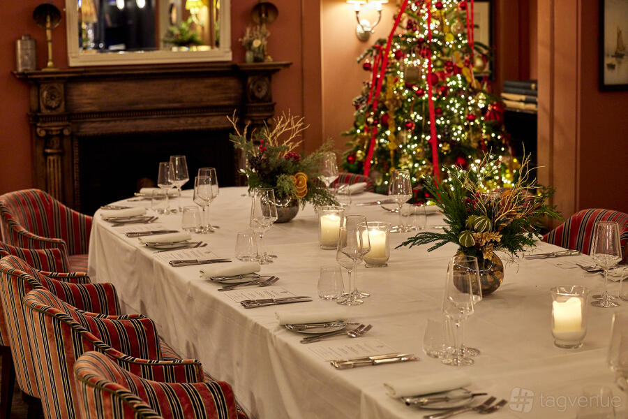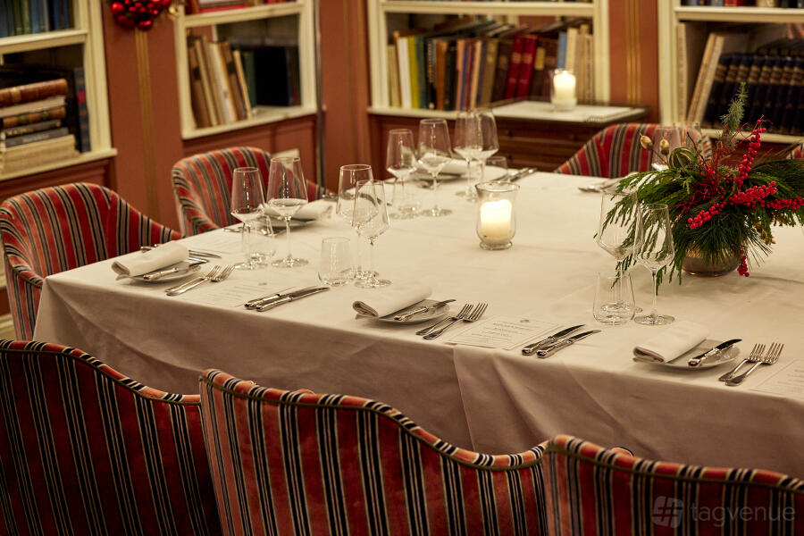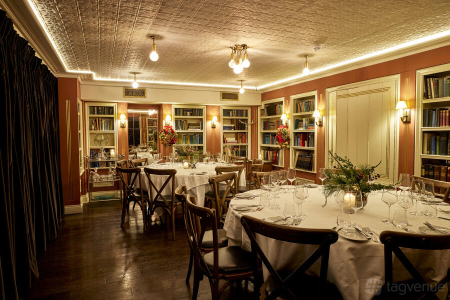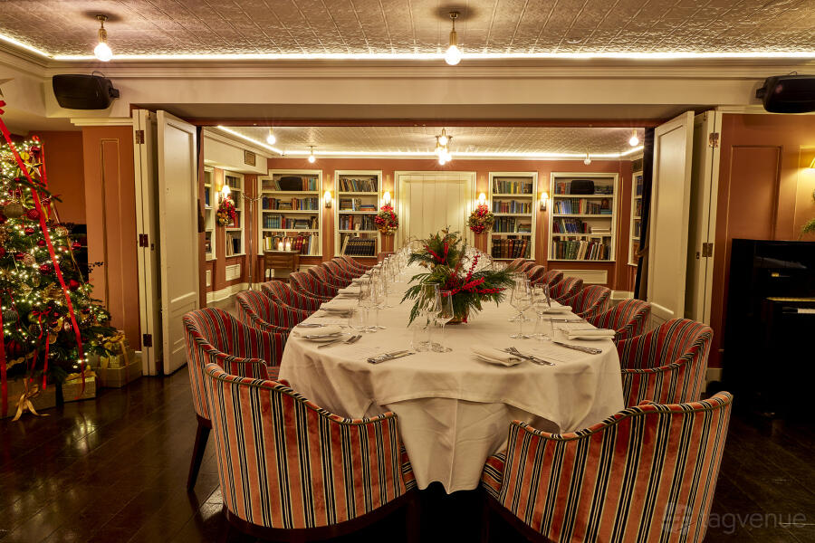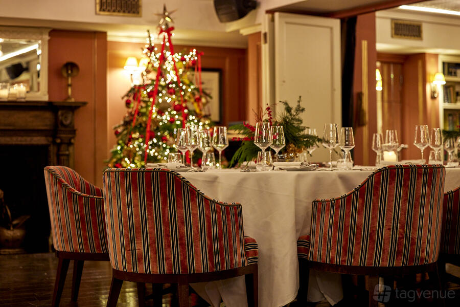 The artwork and interior mirror the classic feel of the main restaurant, while there’s a plasma screen for presentations and a DJ point that serves more lively events.