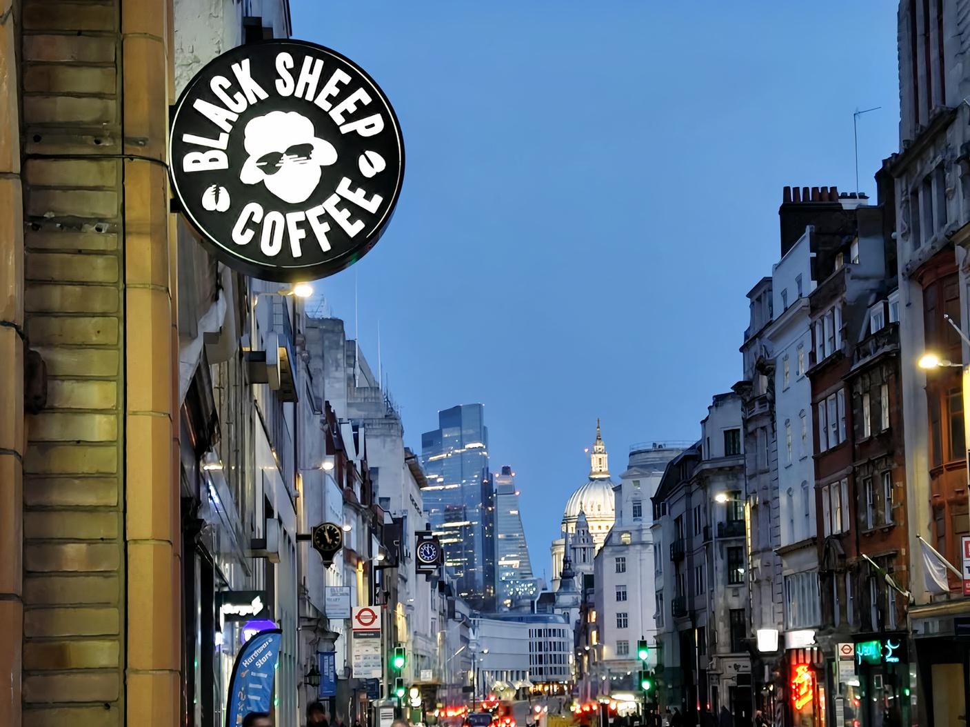 Black Sheep Coffee at Fleet Street is a vibrant coffee shop in the heart of London. Nestled within this historic area within the City of London, this café is know for its specialty coffee made from their distinctive Black Sheep blend.