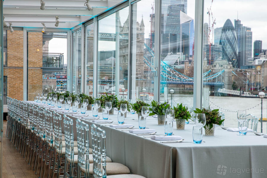 It is the perfect venue for corporate and private events as well as being an iconic spot to host your wedding celebrations. During the warmer months, the venue’s glass doors open to create a sense of alfresco dining, while during the winter the floor-to-ceiling windows offer unrivalled views over the Thames.