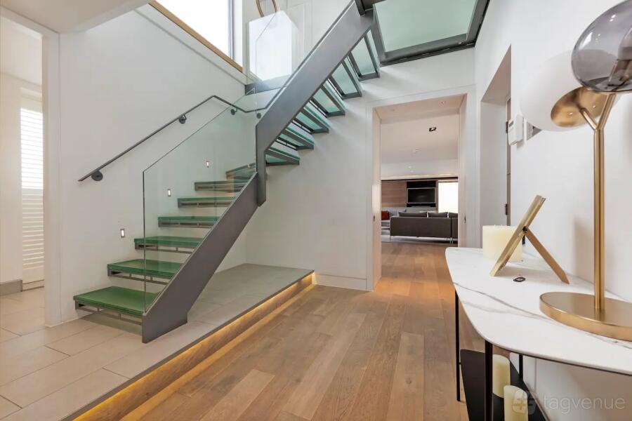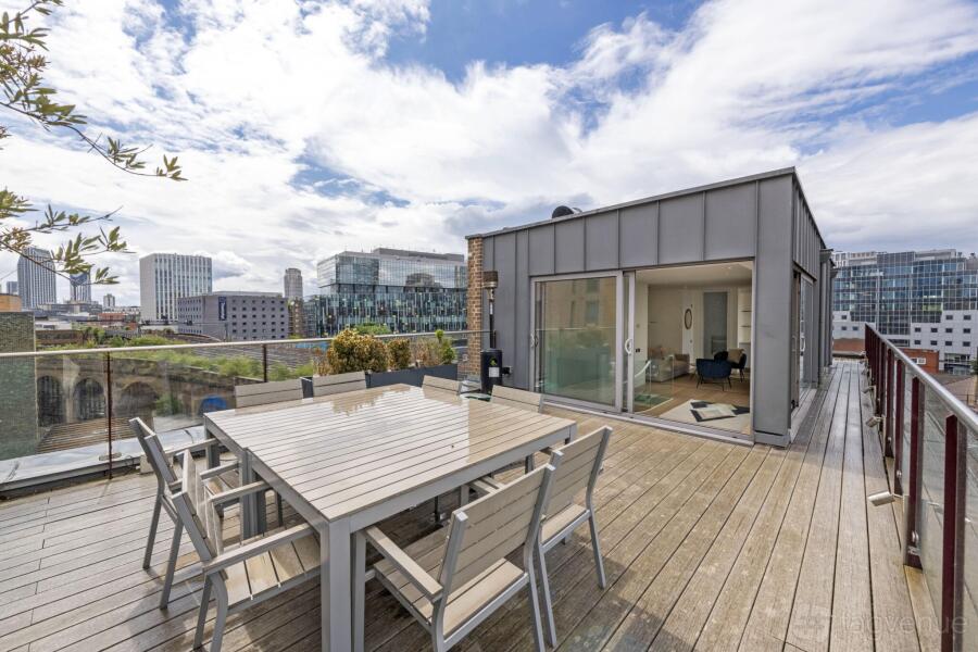 A stretched balcony overlooks the heart of Southbank, and upstairs, there are two double bedrooms with en suite bathrooms. Spanning across the top floor, you’ll find a studio space, opening out onto the spacious rooftop terrace.