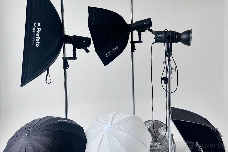 We offer a fully equipped space with 4.4-meter high ceilings, multiple backdrops, and lighting options including Profoto, Nanlite, and Aputure systems. With natural light, a hair-washing station, and a 4x4-meter L-shaped infinity cove, we’re designed to meet diverse production needs.