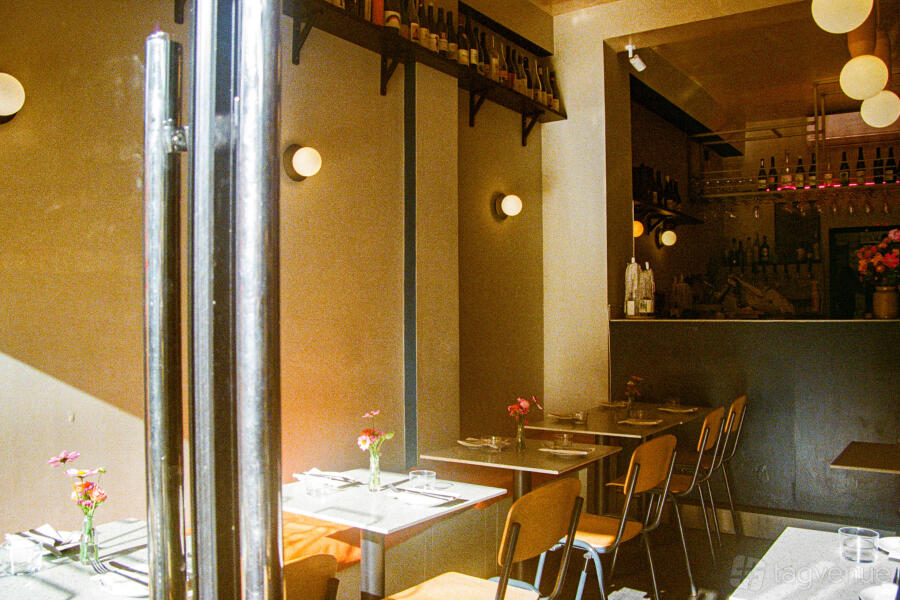 The venue seats 26 inside, with space for an additional 12 guests on the terrace. We can also host standing parties for groups of up to 40 people.