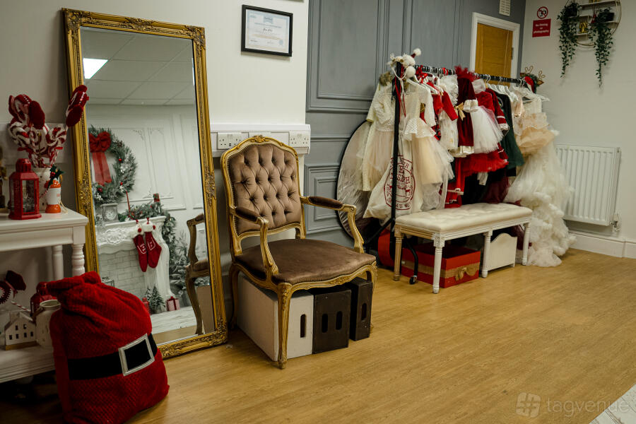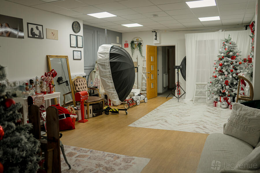 We offer premium thematic clothes for hire, as well as a range of Christmas props that are included in the price. The spacious layout allows for easy movement and flexibility, providing plenty of options for various angles and shots. With soft, adjustable lighting and four free parking spaces at the rear, our studio is designed to make your photoshoot experience stress-free and enjoyable.
