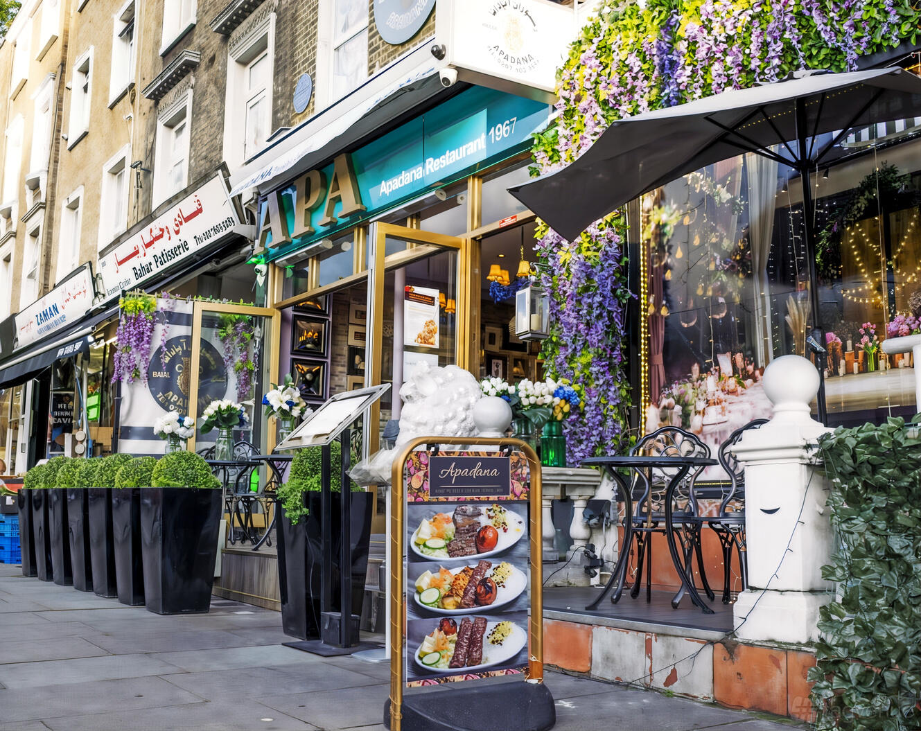 Apadana is located at 351 Kensington High Street, in the Kensington, London district of London. The nearest metro station is Kensington (Olympia) Station.
