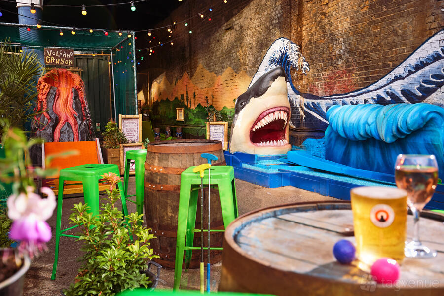 Our Hackney mini-golf course just got a massive glow-up—bigger, better, and fully covered so the rain won’t stop your game. Get ready to putt your way through a Polynesian-themed adventure, featuring volcano canyons, tiki forests, stone circles, and even an undersea octopus challenge.
