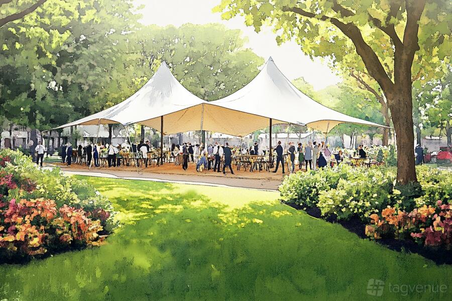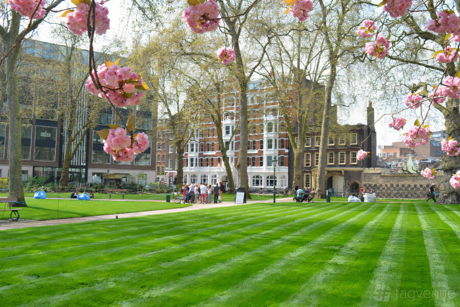 Celebrate summer at Charterhouse Square with an all-inclusive party in a beautiful outdoor setting. Located in Farrington, London, the historic space features an exclusive access to this historic square, a decorated tent, elegant garden furniture, and a stylish covered bar.