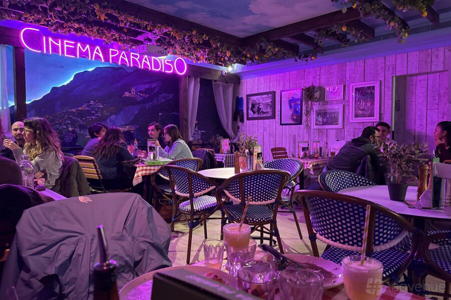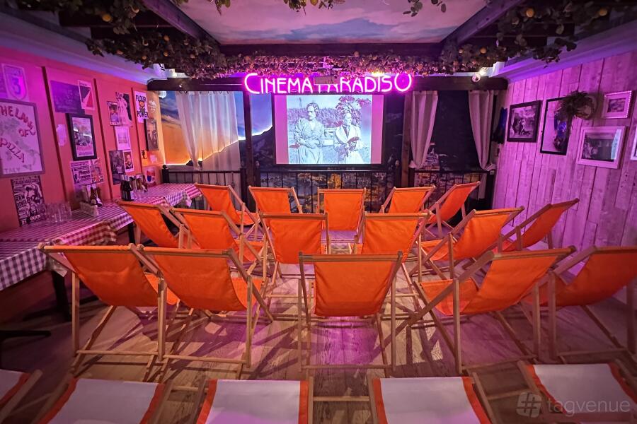 Downstairs, a hidden lemon grove awaits. Under pergolas and surrounded by lemon trees, guests can down spritzes and enjoy authentic pizzas in a serene setting. By night, the grove transforms into London's first Lemon Grove Cinema, offering alfresco film screenings with deck chairs and fresh pizza!