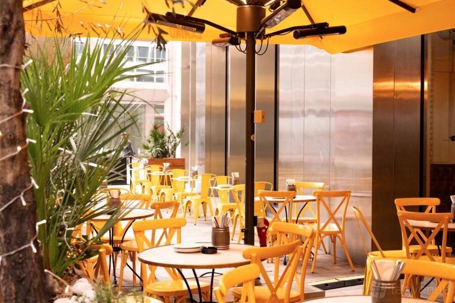 The open kitchen, led by Executive Chef Nacho del Campo, adds theatre to the dining experience. Signature dishes include Arroz Negro and Galician-Asturian Rib-eye Cazurra beef. The drinks menu features unique drinks and an extensive Spanish wine list.