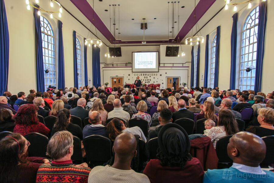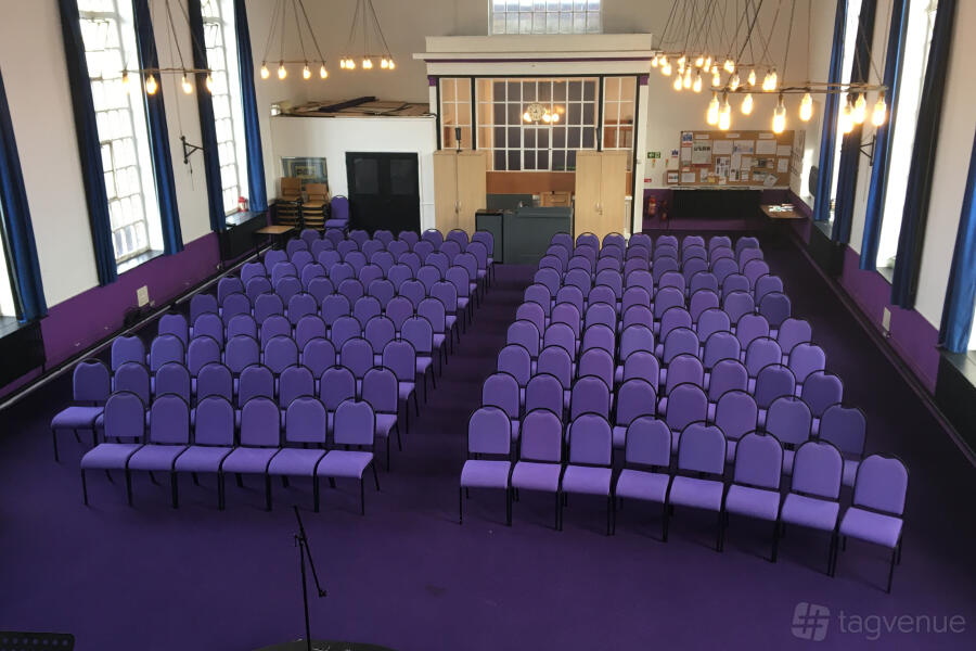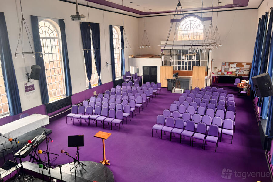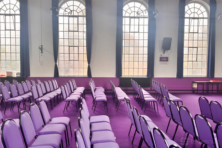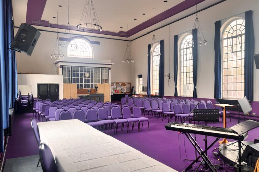 Burnt Oak Church offers a space for private hire. The grand Upper Hall fits up to 300 standing, 250 seated theatre-style, or 200 with tables and chairs. Suitable for away days, conferences, workshops, private dinners, receptions, community events, and celebrations.