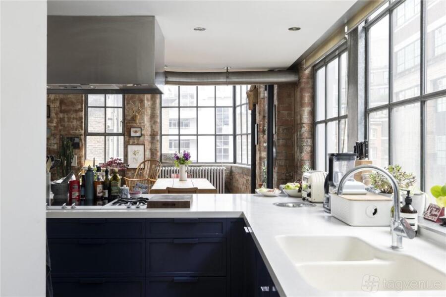 New York-style loft in Clerkenwell is located at 1-10 Summers Street, in the Holborn, London district of London. The nearest metro station is Farringdon Station.
