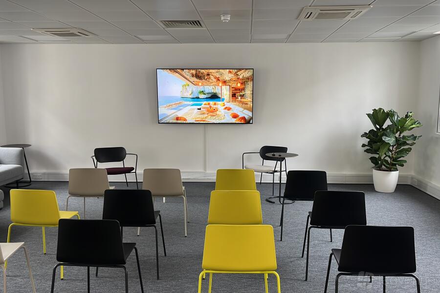 Be it talks, workshops, networking receptions, or strategy offsites-a fitting spot for 40-90 guests in a variety of formats (theatre, classroom, boardroom, or standing). The space is largely equipped with presentation screens and tech support.