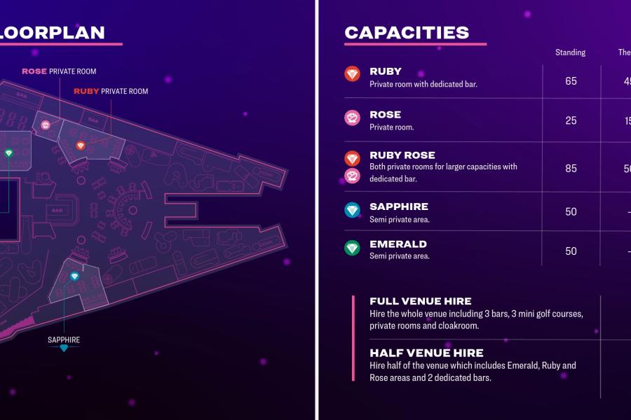 Spaces for hire at Puttshack Bank