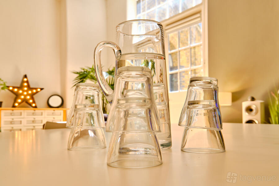 The space offers great natural light with blackout option available. We also have ceiling mounted lights and sound reverb panels in the studio, and a fully equipped kitchen.