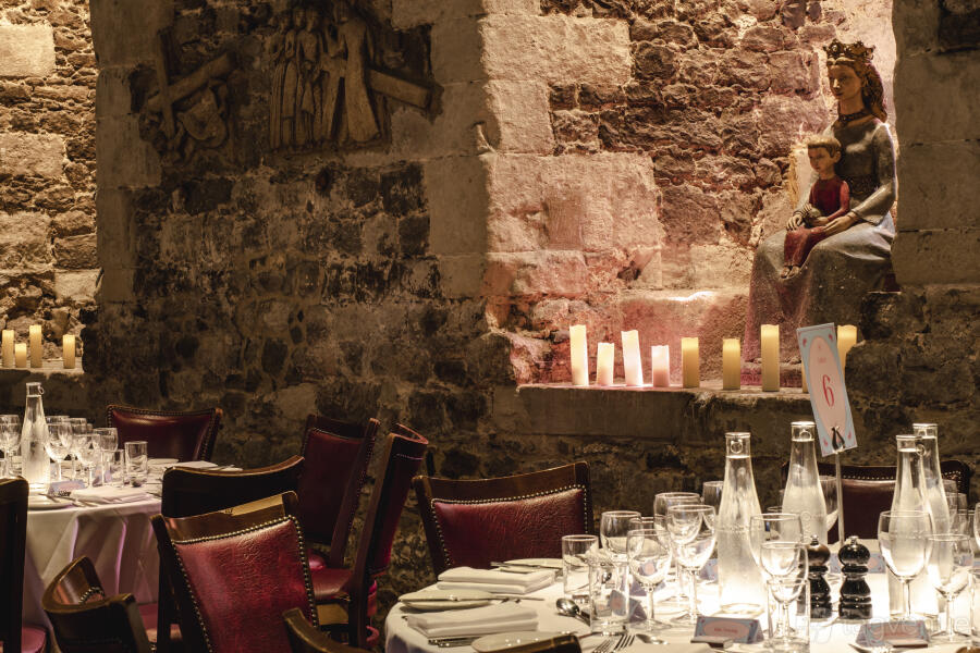 This magical medieval space, with its vaulted ceilings and stone walls, exudes historic charm and grandeur. It’s a versatile venue that can host up to 200 guests, making it ideal for grand celebrations, corporate events, and elegant dinners.