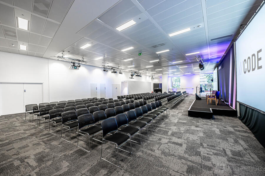 CodeNode benefits from high ceilings, fast and reliable WIFI, high-spec ceiling-mounted projectors and plenty of flipcharts, whiteboards and sockets throughout the venue. A large loading bay area and goods lift to provide easy access to your event staff and exhibitors when delivering any event collateral, banners, booths or other installations.