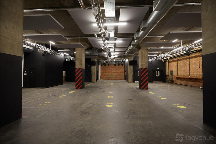 The space boasts a full Funktion One sound system, 4.6m ceiling heights; striking industrial columns; an onsite bar & cafe; pre installed trusswork and lighting infrastructure, loading bay facilities & access to additional ancillary space (changing rooms, studio space).