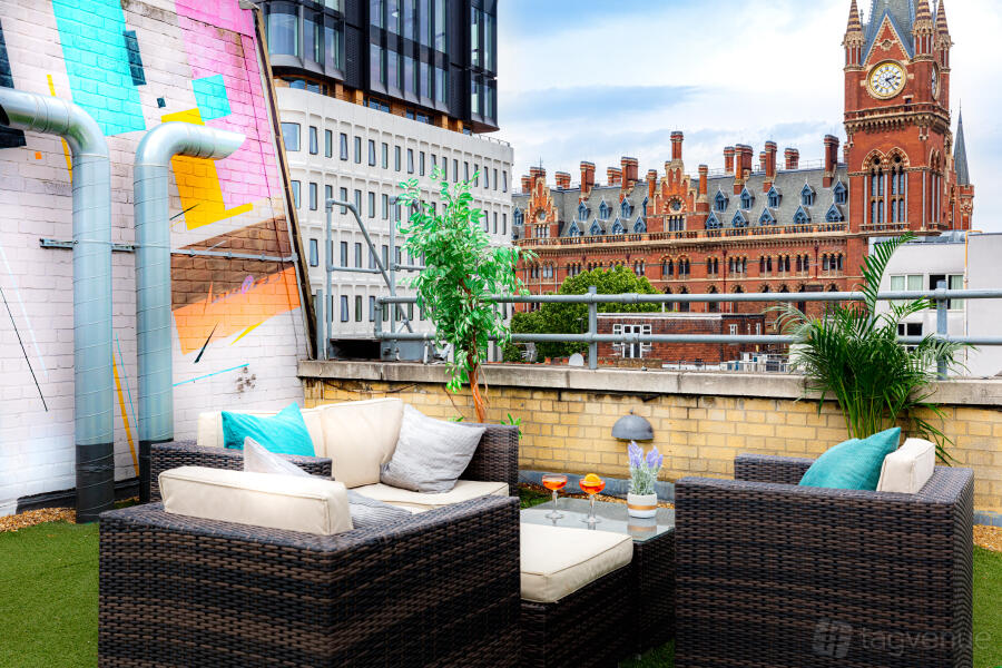 Overlooking historical St Pancras Station and King's Cross to the north, the Shard to the South, it is magnificent on any day.