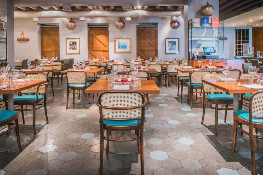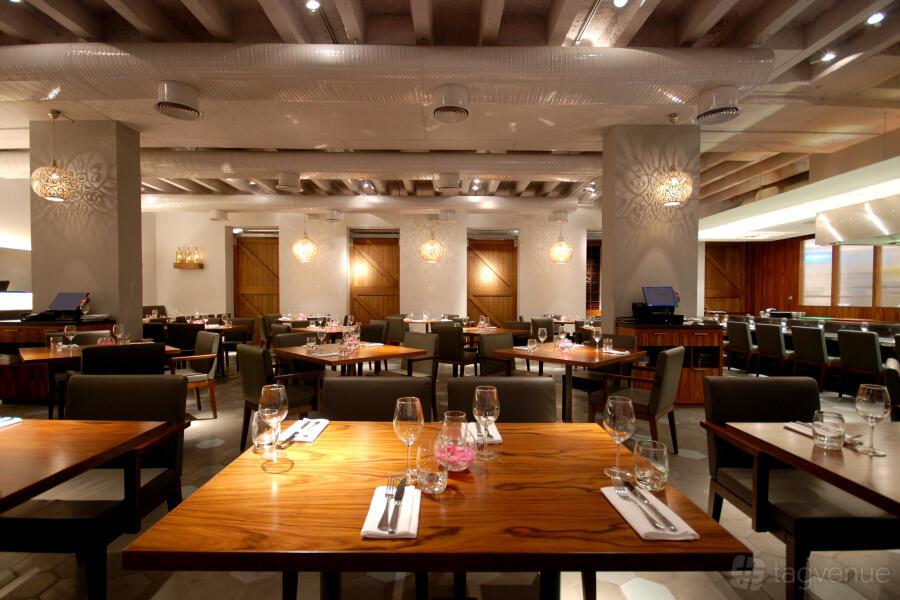 In contrast, the new design elements of Cinnamon Kitchen's interior incorporate a captivating blend of textures and lighting.