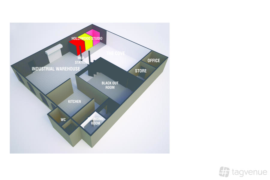 All spaces feature drive-in car access. Perfect for photoshoots with vehicles.