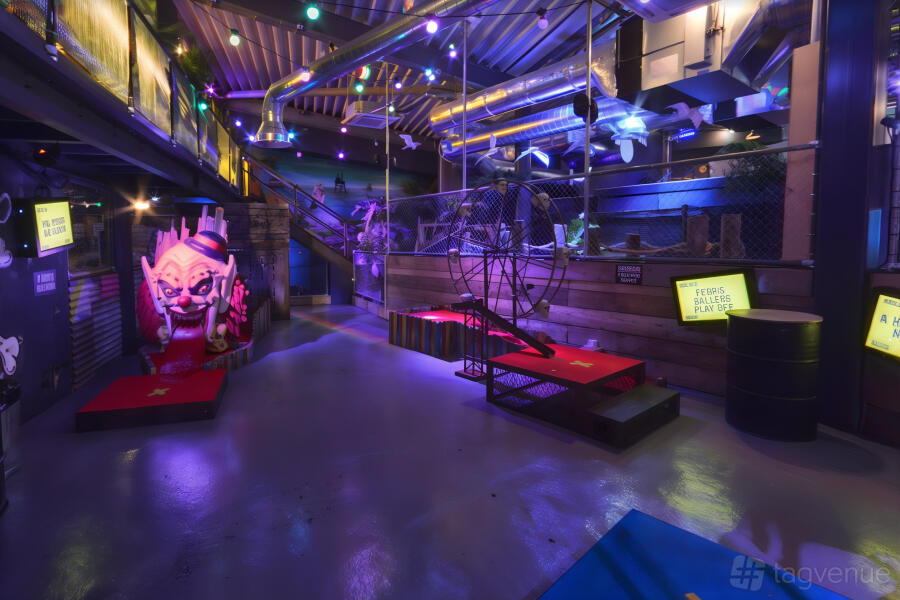 The venue also features bars serving cocktails, creating a nightclub-like vibe perfect for birthday celebrations, corporate events, and team-building activities.