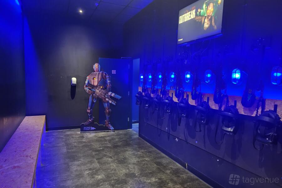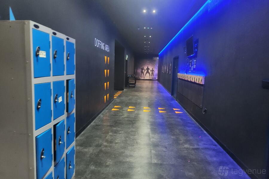 The venue features a gaming lounge with Nintendo Switch games and a selection of retro video games. On-site lockers are available for storing belongings, and there's a bar area serving soft drinks, alcohol, and pizza for before or after your session.