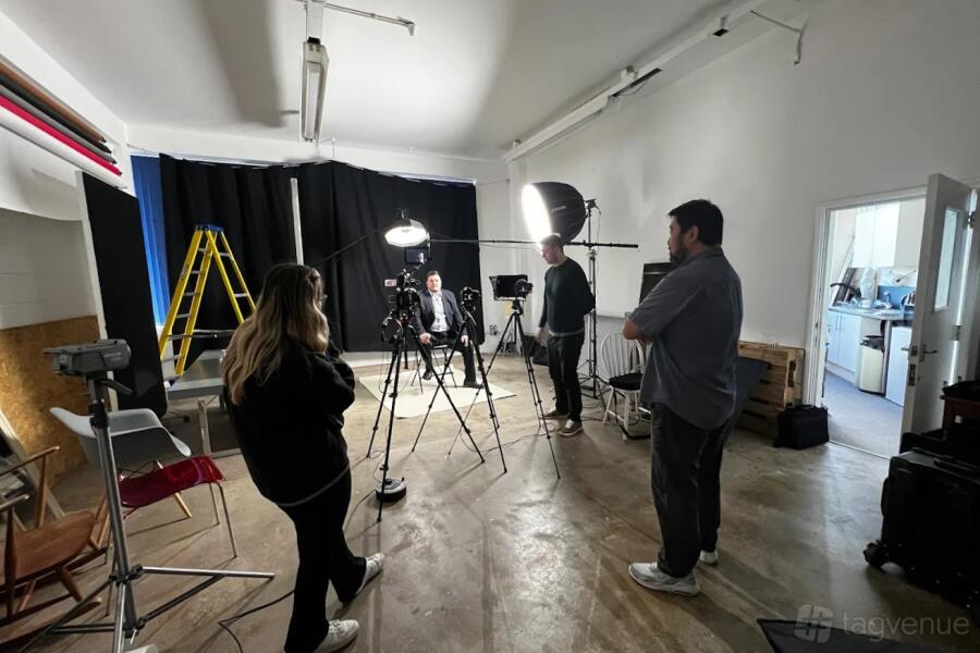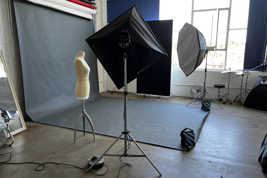 There is a large range of both strobe and LED lights available, as well as a mixed backdrop roll system and a 6m x 6m space for shooting. The facility to build sets is also available if required.