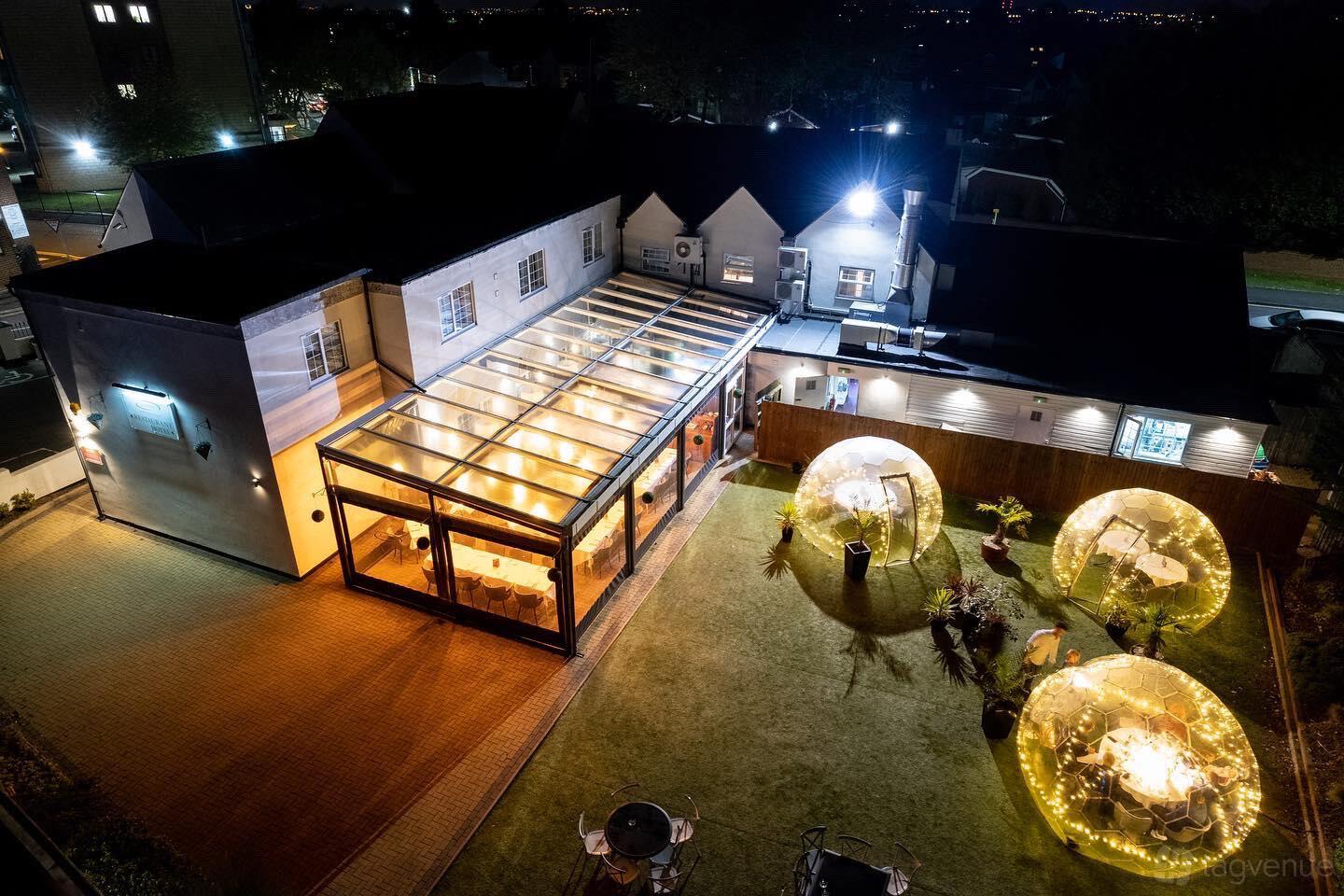 One of the unique features of this culinary haven is the enchanting conservatory. Bathed in natural light, this space offers panoramic views of lush greenery that create a serene backdrop to your dining experience. The view is further enhanced by domes with tables, adding to the unique atmosphere.