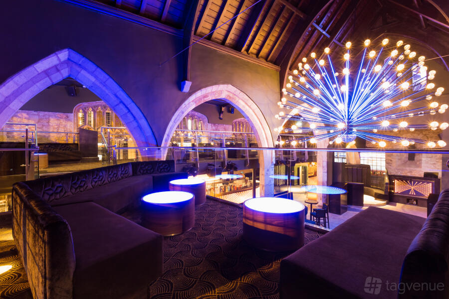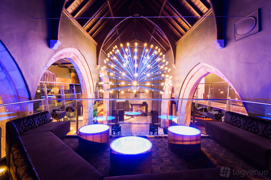 The ground floor has a color-changing LED bar, seating, and a dance space beneath a massive LED chandelier. It is suitable for 60 to 225 guests. The balcony hosts up to 75 guests and includes a private bar, VIP booth seating, and LED tables. It can be hired exclusively (subject to availability) with VIP wristbands for access to the main floor.